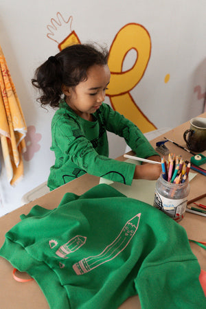 Kate is two and a half and is wearing our 18m-3y fleece sweatshirt - it's a relaxed fit with lots of room to last the whole winter!